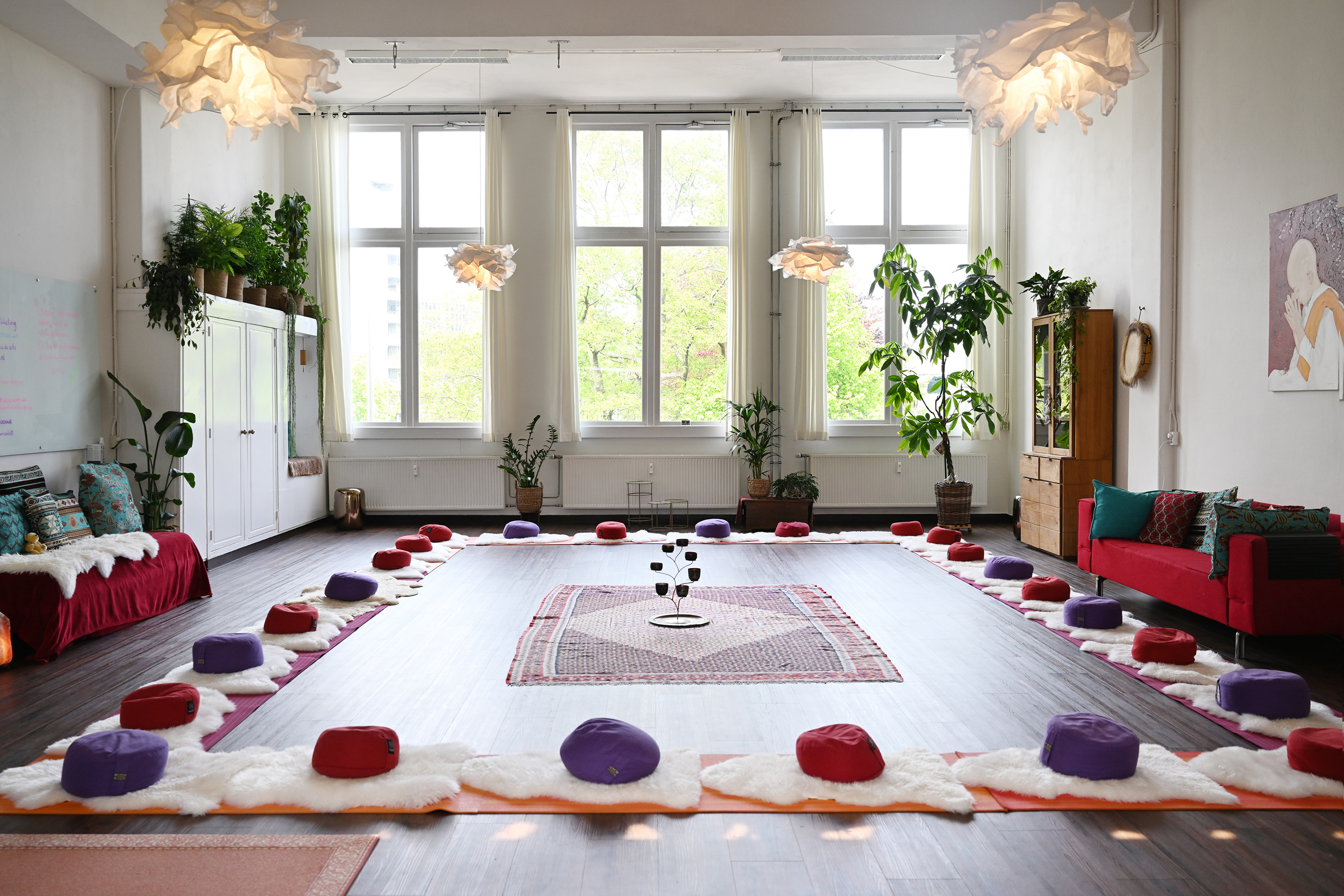 Het lokaal kan voor u worden ingericht naar wens: van vergaderopstelling met tafels en stoelen tot een setting met matjes en meditatiekussens.